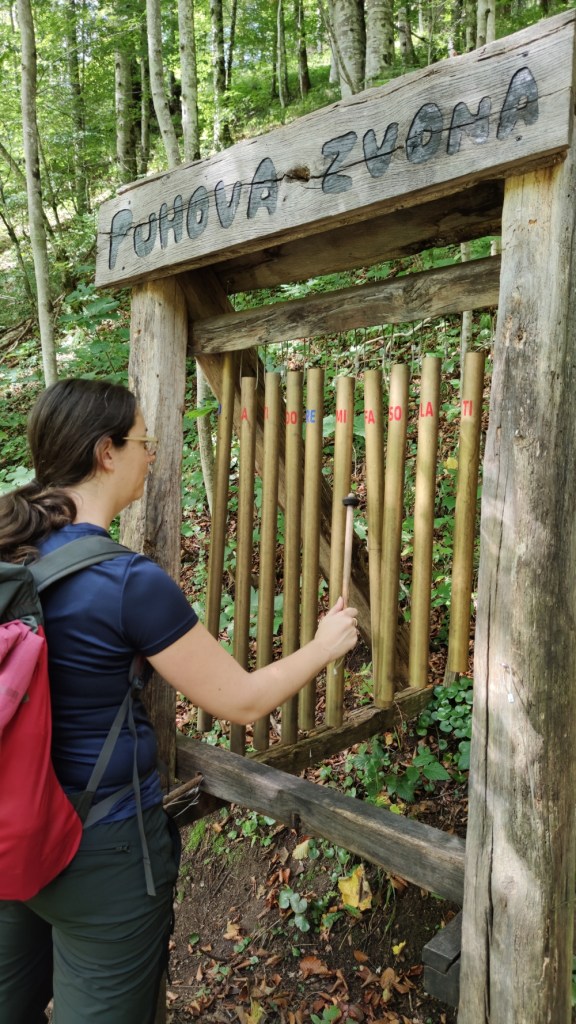 “Tehničke specifikacije” staze se mogu obuhvatiti jednom rečenicom – duga je oko 3 kilometra, visinska razlika je skromnih 140 metara, izvrsno je uređena, i idealna za obiteljske izlete (što ujedno znači da ne predstavlja baš neki kondicijski izazov – no, kondicijski izazovi su ionako samo jedan od brojnih razloga zbog kojih volim hodati prirodom). Relativno je lako prepričati i sadržaj poučne staze – dosta bukve, vrbe i tise, raznorazne vrste paprati, ciklame na sve strane, uz podosta biljaka zanimljivih imena poput sedmolista, močvarne kaljužnice dubačca ili gorskog zvjezdana, kao i pastrve, srne, ježevi ili medvjedi koji tamo nisu rijetkost. Ah, da, i par drvenih instrumenata koje možete svirati putem – Medina marimba, Jelenov rog, Puhova zvona i Potočne orgulje. Sasvim zgodno, i lijepo uklopljeno u stazu.