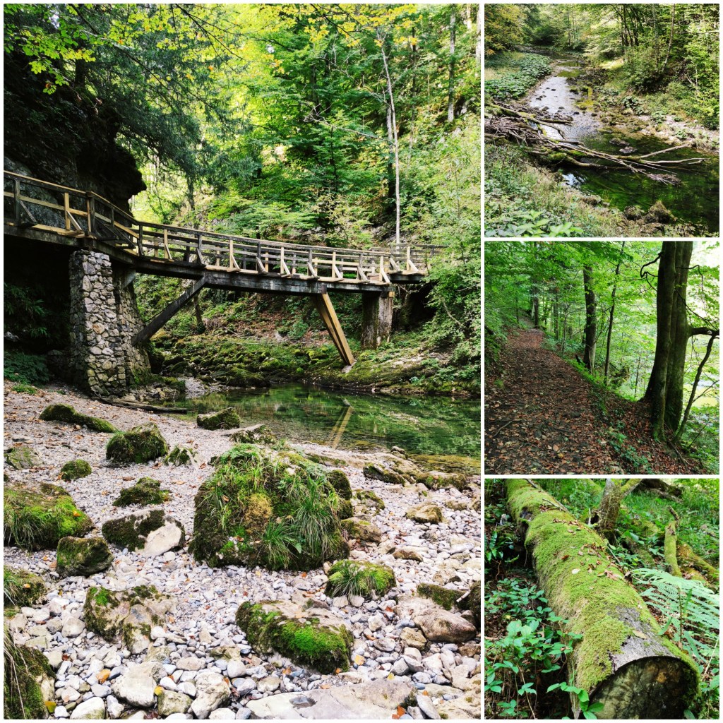 Cijeli put vodi uz potok, a na jednom dijelu hodaš drvenim stazama s ogradom koje su iznimno fotogenične – a kad je vodostaj visok, pa se voda pjeni pod njima, zasigurno i manje ugodne za hodanje. A možda i više. Ne znam, morat ću to provjeriti na proljeće, nakon otapanja snijega 😉